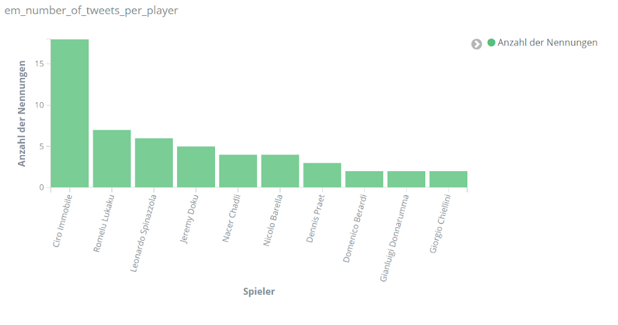 Italien ist der Europameister der EM 2020. Der Weg dorthin war allerdings nicht einfach für die Italiener. Wie schon im Halbfinalspiel gegen Spanien siegte Italien auch gegen England erst im Elfmeterschießen. Sowohl in den 90 Minuten regulärer Spielzeit als auch in der Nachspielzeit konnte keine der beiden Mannschaften das Geschehen dauerhaft dominieren. Auch bei einer Einzelbetrachtung der Spieler fiel keiner der Spieler durch überragende Aktionen auf. Entsprechend selten werden die Spieler beider Teams während des Spiels auf Social Media erwähnt.