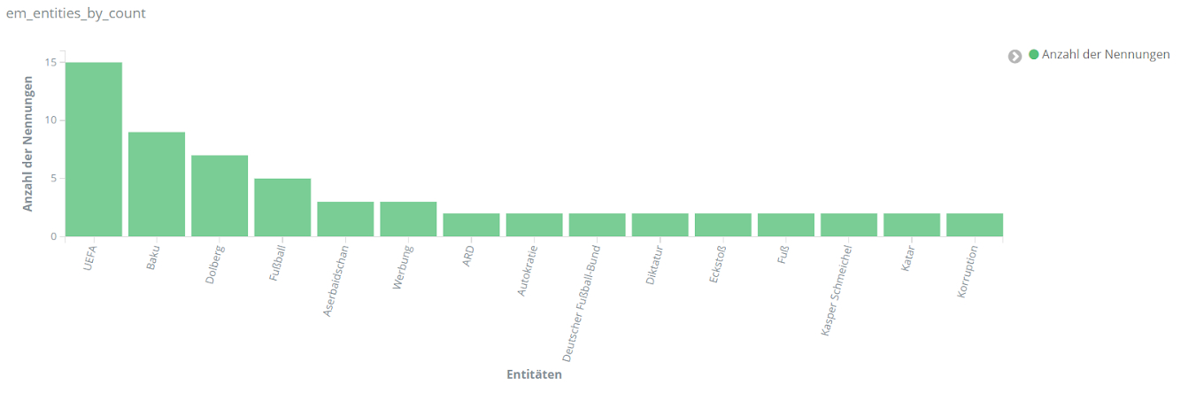Abschließend betrachten wir, welche Themen die EM 2020 besonders geprägt haben. Unter den Entitäten, die von TXTWerk am häufigsten in den Kommentaren zur EM gefunden wurden, befinden sich mehrere grundsätzliche Themen: