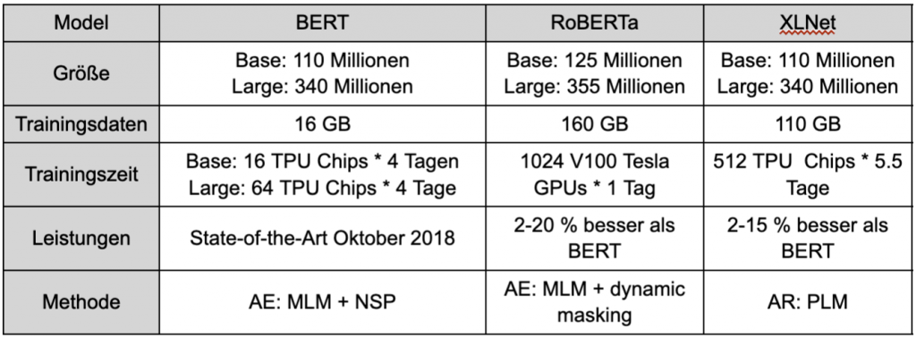 Bekannte Modelle neuronaler Netze: BERT, RoBERTa und XLNet
